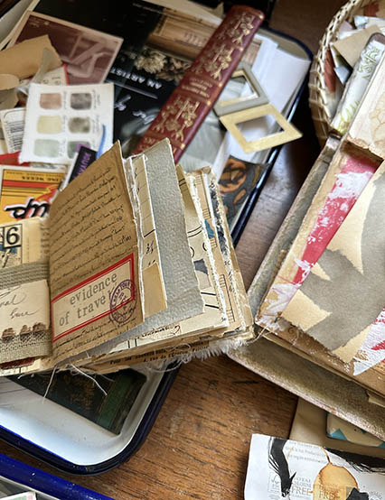 mixed media classes featuring collage, assemblage, jewelry, fabric, fiber arts, sculpting, and painting. Register for a retreat and you can take as many or as few workshops as